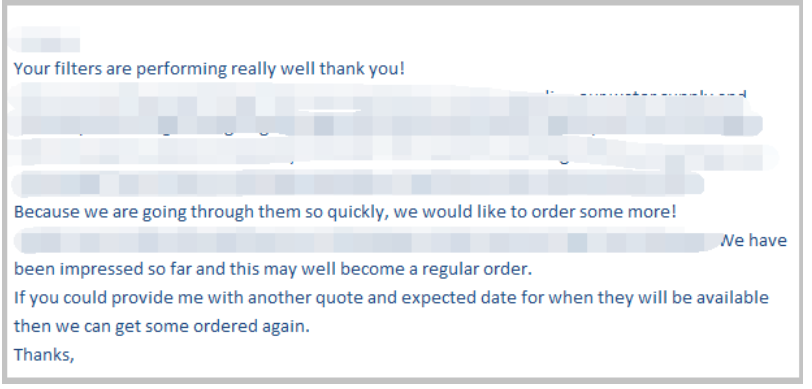 Este es el momento más feliz para nosotros cuando nuestros clientes estaban satisfecho de nuestro servicio y los filtros de cartucho de alto flujo.